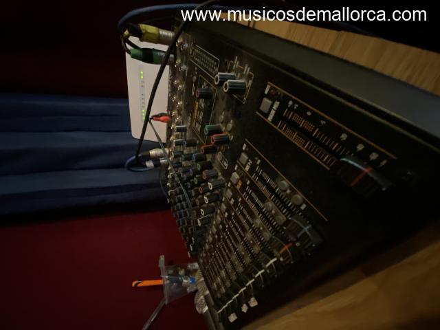 Dispone de mesa de mezcla , micrófonos y monitores, batería acústica , equipo de bajo .